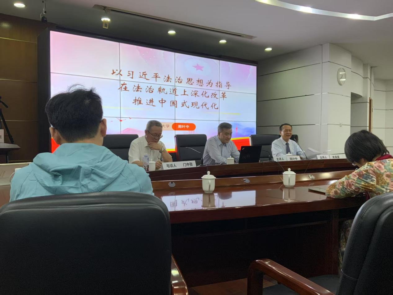 2025年5月16日晚,名家讲坛第227讲暨博导大讲堂第四期在求实楼513室举办。本次讲座由武汉大学人文社会科学资深教授、武汉大学党内法规研究中心主任周叶中教授主讲,围绕“以习近平法治思想为指导,在法治轨道上深化改革、推进中国式现代化”主题,为我校师生带来了一场激情澎湃的学术盛宴。本次讲座由我校研究生处、科研处、法律学院共同主办,新利18官方客服教授、博士生导师关保英主持并与谈,新利18官方客服教授、博士生导师门中敬与谈。