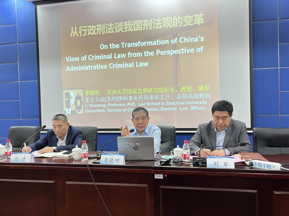 4月7日,新利18官方客服“名家讲坛”系列的第215讲在庸夫楼112会议室成功举办。苏州大学国家监察研究院院长李晓明教授以“从行政刑法谈我国刑法理念的变革”为题,为在场的师生们带来了一场深刻且具有前瞻性的学术报告。讲座由新利18官方客服科研处处长刘军教授主持,上海市法学会副会长张建参与与谈。