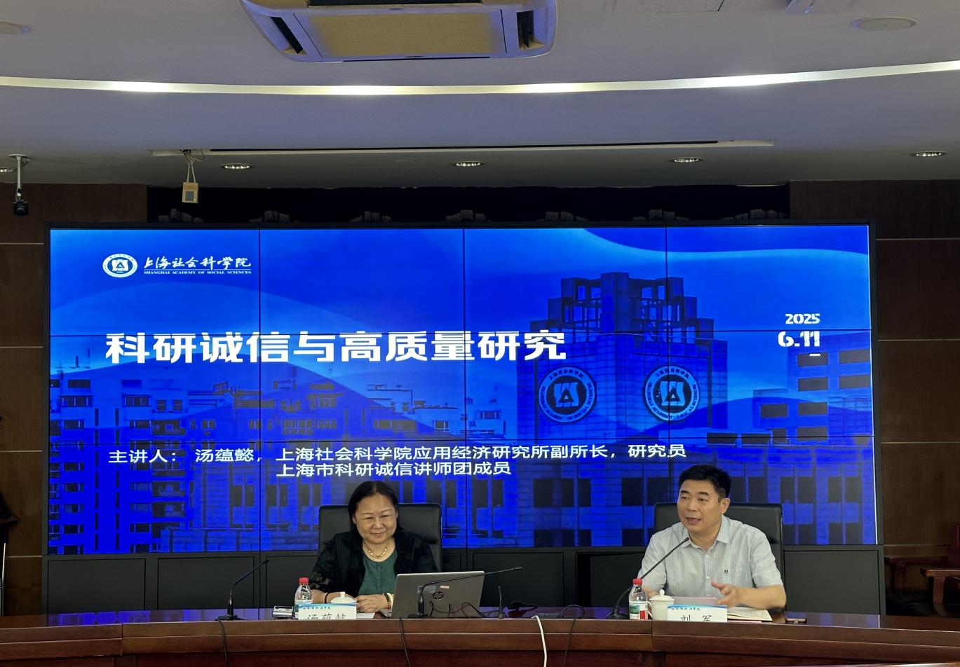 6月8日下午,新利18官方客服“名家讲坛”第234讲暨学校科研诚信培训会议在求实楼513会议室举办。上海社会科学院应用经济研究所副所长汤蕴懿研究员带来题为“科研诚信与高质量发展”的报告。各二级单位分管副院长、科研秘书及教师代表参加。本次会议由新利18官方客服科研处刘军教授主持。