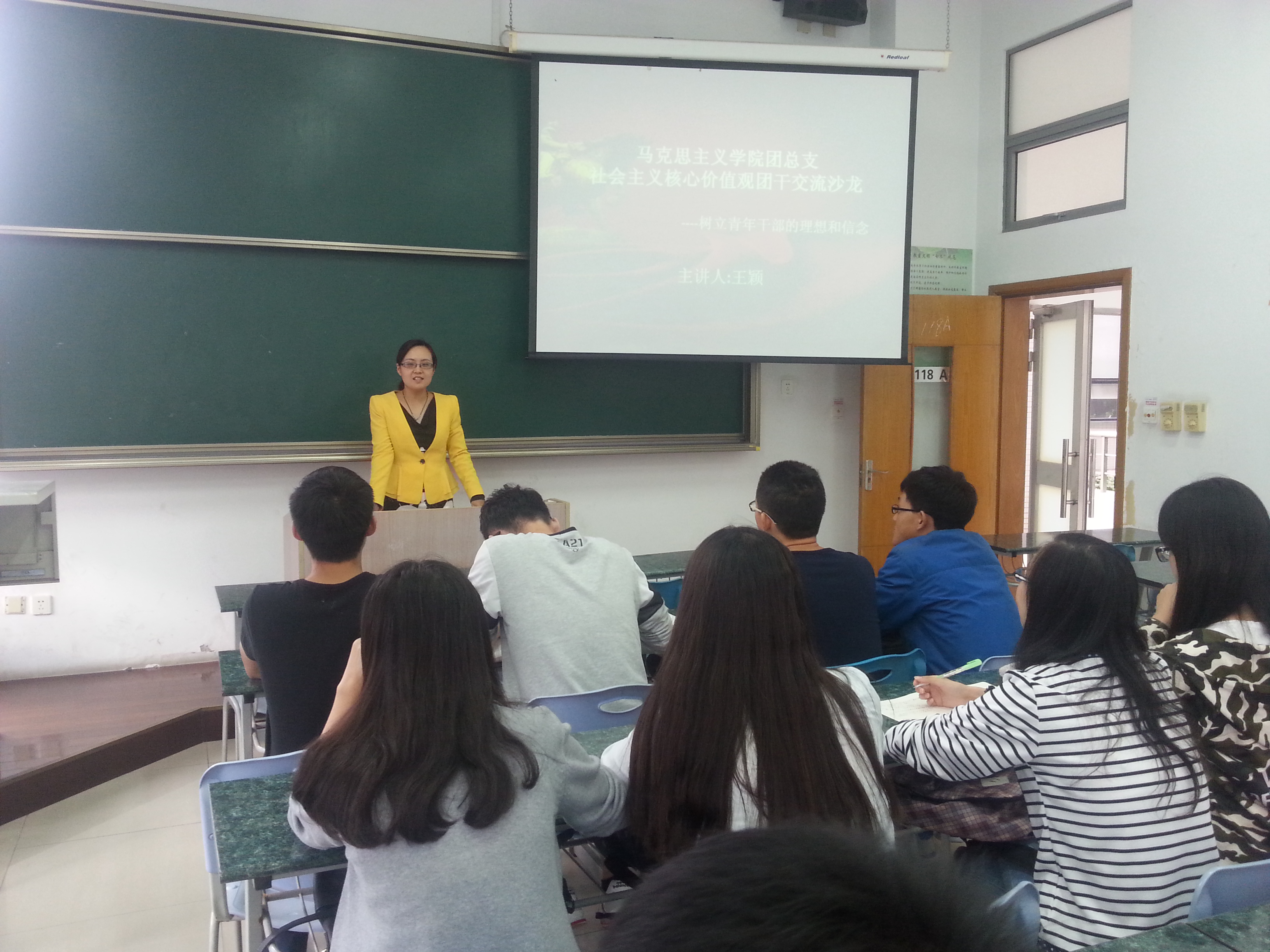为践行社会主义核心价值观,树立当代青年干部的理想和信念,马克思主义学院团总支于9月30日在主教116A开展社会主义核心价值观团干交流活动。