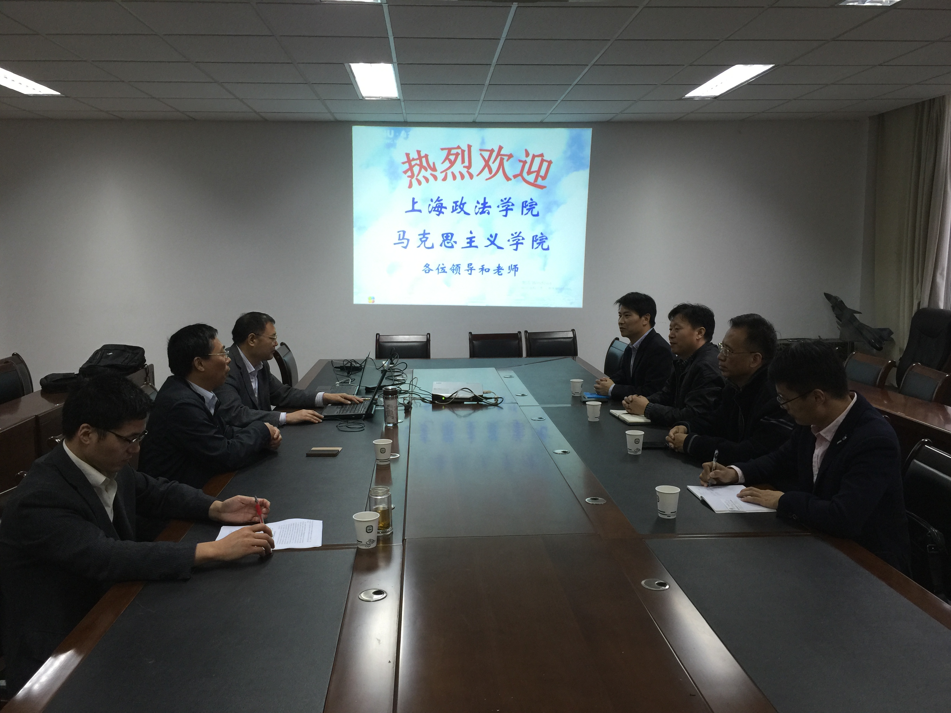 10月29日下午,我校马克思主义学院党总支副书记徐俊峰副教授、副院长徐世甫副教授、马克思主义原理教研室主任刘会强教授和思想道德修养与法律基础教研室刘旭光老师,前往南京师范大学马克思主义学院进行调研交流,受到了南京师范大学马克思主义学院副院长王永贵教授、副院长王刚副教授以及马克思主义中国化教研室管新华副教授等人的热情接待。