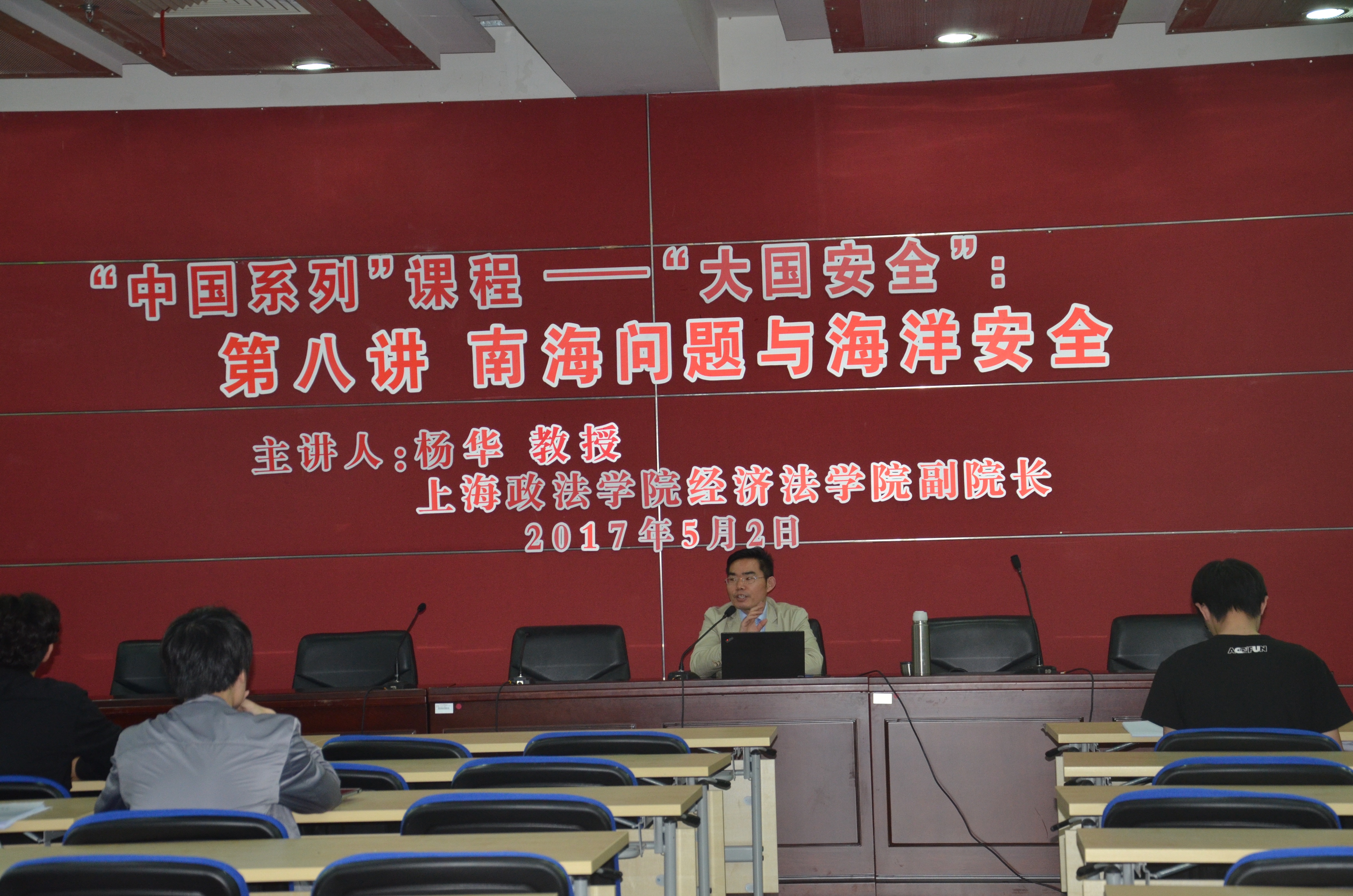 5月2日,新利18官方客服经济法学院副院长杨华教授围绕“南海问题与海洋安全”主题为《大国安全》课程做讲座,马克思主义学院院长徐世甫教授主持讲座与互动。