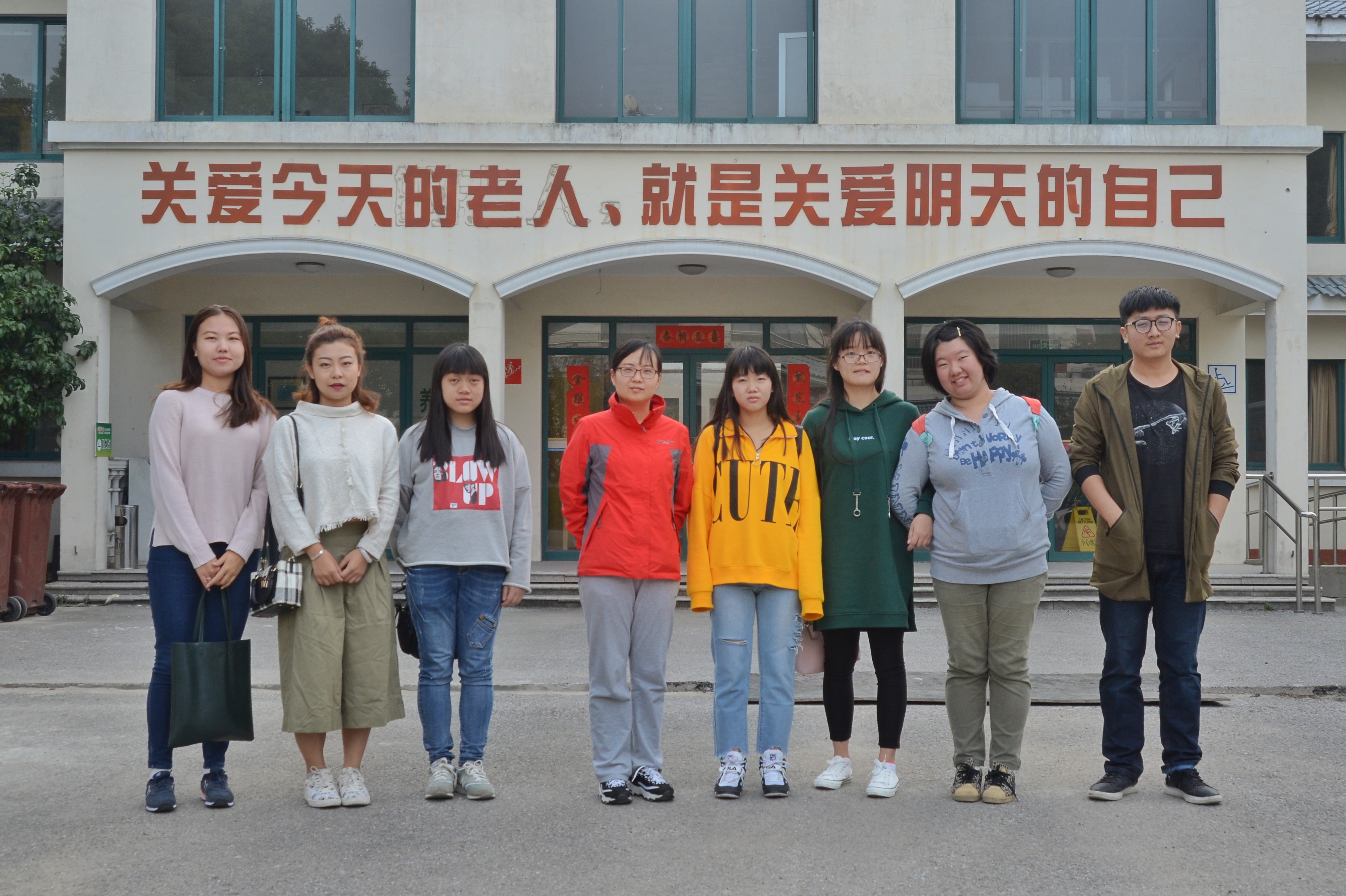 2017年10月22日,辅导员王颖老师带领由学生党员代表,团学骨干组成的志愿者队伍来到佘山敬老院,邀请有拍照经验丰富的师傅为老人们拍摄“最美夕阳红”系列照片,老人们发自内心的灿烂笑容感染了在场的每一个人。