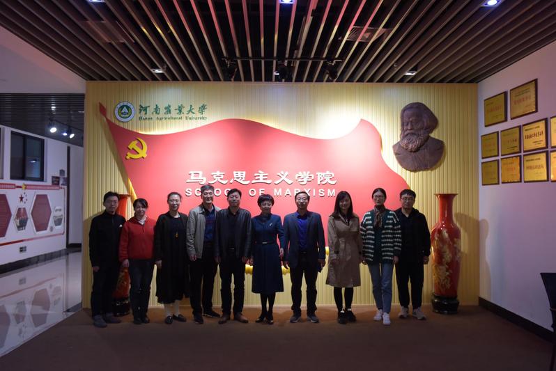 为深入贯彻落实中宣部、上海市委宣传部、上海市教育工委关于加强马克思主义学院建设、考核标准相关文件精神,进一步推进我校马克思主义学院规范化建设,加强学院间在学科建设、教学改革、学生工作、日常管理等方面的经验交流,受河南农业大学马克思主义学院邀请,马克思主义学院党总支书记徐俊峰,教工支部副书记、思想政治教育教研室副主任蒋翠婷,工会主席、中国近现代史教研室副主任赵凌飞,马克思主义原理教研室主任侯天佐、中国化马克思主义教研室主任李先悦一行五人于10月22-25日赴河南农业大学马克思主义学院开展调研活动。