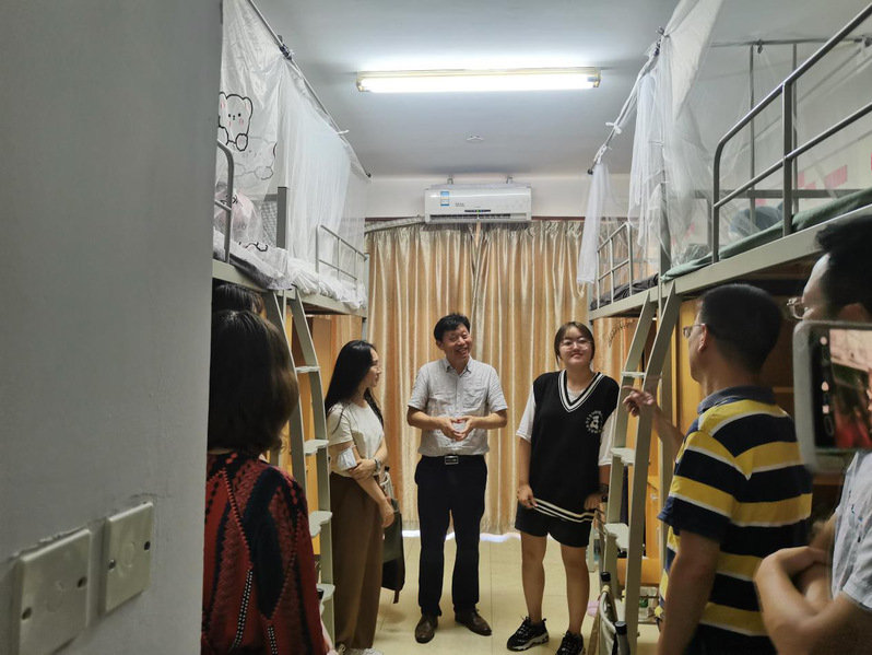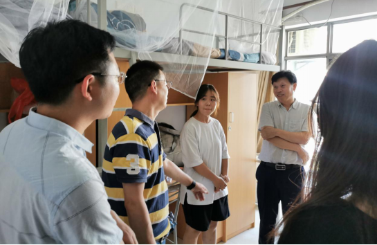 为深入了解马院新生宿舍情况,切实掌握新生住宿生活需求,帮助新生尽快适应大学生活,加强老师与学生之间的双向互动,进一步提升新生对于学院的认同感与归属感,8月31日,马克思主义学院党总支书记徐俊峰、党总支副书记储德峰、2021级本科生班主任李望根、本科生辅导员段佳蓓及部分学生代表一同前往走访马克思主义学院全体本科生新生宿舍。
