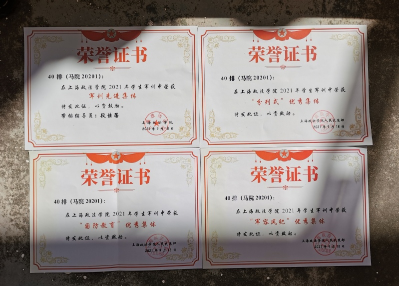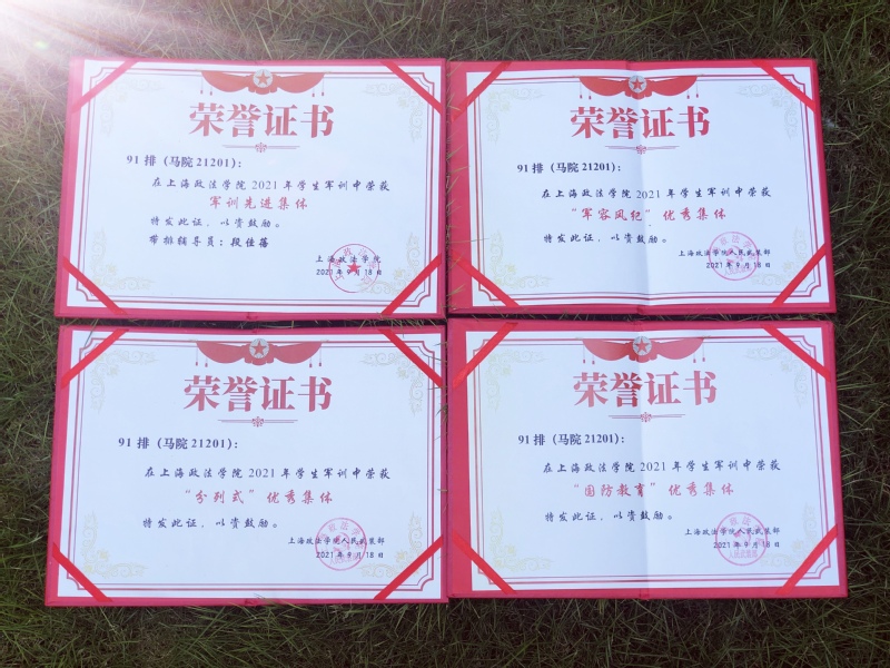 马克思主义学院2021年参训班级为40排、91排,大一、大二年级除因疫情原因延迟返校的学生外,其余学生全部参训,共63人,无一人请假。马克思主义学院2021年军训仅两个排,但在这样人数上明显处于劣势的条件下,仍然取得较高的荣誉——两个排分别荣获各团“军训先进集体”、“分列式优秀集体”、“军容风纪优秀集体”、“国防教育优秀集体”及“优秀教官奖”等共计十个荣誉奖项。其中,40排更是包揽“军容风纪优秀集体”与“国防教育优秀集体”两个集体单项第一名。学院队列英姿勃发、气势如虹地走过主席台,他们奋发进取、勇往直前的精神风貌赢得了全校师生的认可,也用一项项荣誉为自己的军训生涯划上了完美的句号。