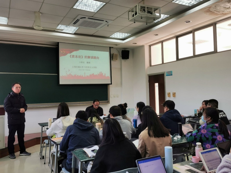 2021年11月8日上午,全国经济哲学研究会副会长、上海交通大学马克思主义学院卜祥记教授应我院邀请,以“《资本论》的解读路向”为题进行讲座。讲座由刘会强教授主持,马克思主义学院范迎春副教授与2019级、2020级、2021级研究生参加并聆听了本次讲座。
