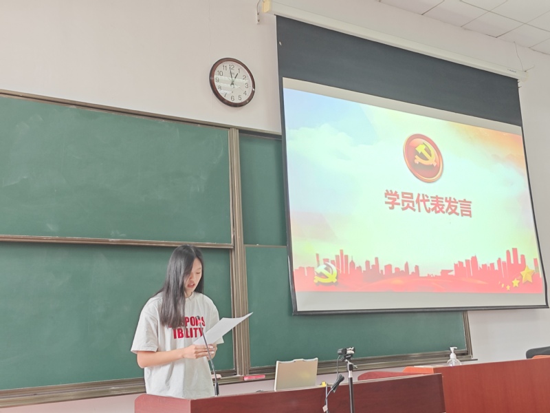 来自法律学院22023班的孙一茗同学作为本次培训班的学员代表发言,表示希望通过本次培训班锤炼理想信念,做到知行合一,学有所思、学有所获、学有所成。