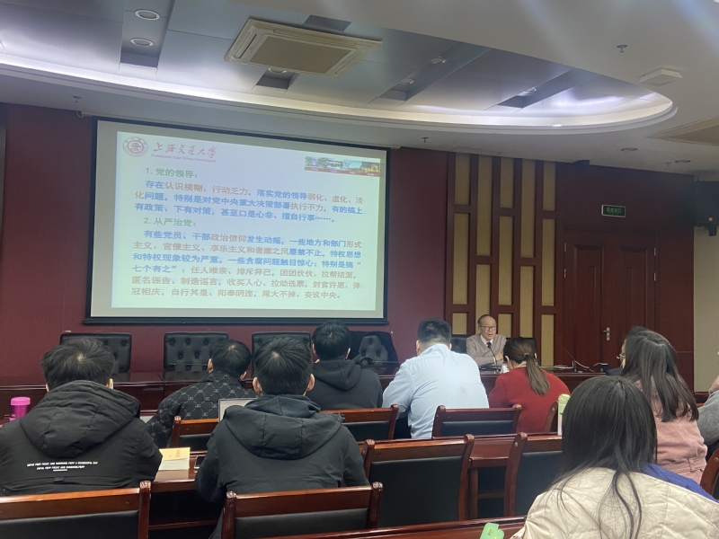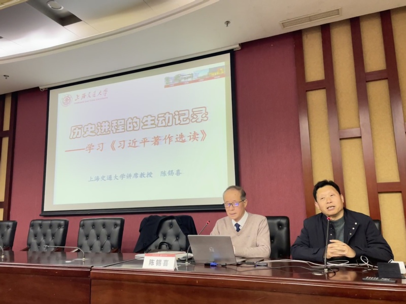 3月13日,建校40周年系列学术活动“名师讲坛”第一百六十一讲在汇知楼107举办。中央马克思主义理论研究和建设工程首席专家、上海交通大学讲习教授陈锡喜受邀作题为“历史进程的生动记录——学习《习近平著作选读》”的主题报告。马克思主义学院党总支书记徐俊峰教授主持,来自各个学院的100余名师生参加了此次讲座。