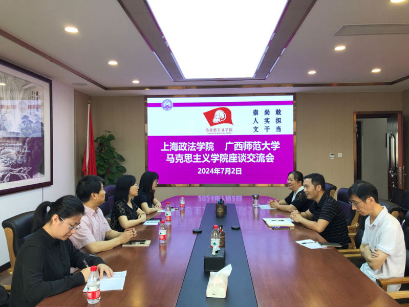 广西师范大学马克思主义学院党委书记罗富元、分管科研工作的副院长刘浩林、分管教学工作的副院长凌小萍对我院教师的到来表示热烈欢迎,并就本学院博士点申报、学科建设以及思政课教学等成功经验与我院教师进行了深入交流。罗书记指出,人才建设是学院建设的重中之重,要有效借助各方平台的力量,包括重量级人才的柔性引进等,积极打造人才高地。刘院长指出,开展有组织的科研是学科建设与科研工作的重要法宝,以国家级项目为例,学院已有一半以上的教师至少获得1项。凌院长就如何提升思政课教学质量进行了深入讲解,特别是《习近平新时代中国特色社会主义思想概论》课的开设经验极具示范意义。