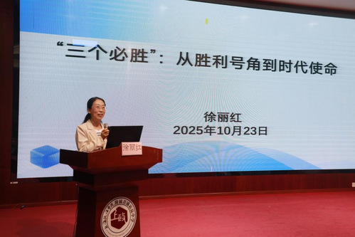 10月23日,以“思政引领培根铸魂,名师领航赋能成长”为主题的2025年度青浦区教育系统第八届名优教师培养工程“名师在课堂”专场展示活动在新利18官方客服附属青浦崧淀中学举行。本次活动由青浦区教育局、区教育学院主办,吸引了区内众多中小学德育骨干教师积极参与。我校学(研)工部(处)副部长、马克思主义学院党总支副书记、副院长徐丽红副教授应邀出席并作专题报告。