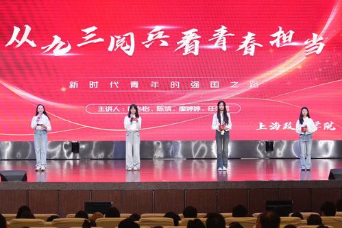 在交流展示环节,遵循从培养道德情感到打牢思想基础,到提升政治素养,再到增强使命担当的发展规律,大中小学不同学段聚焦九三阅兵同上一堂思政课,共同交流思想政治教育创新成果与实践经验。马克思主义学院学生以《从九三阅兵看青春担当——新时代青年的强国之路》为题进行了现场宣讲。