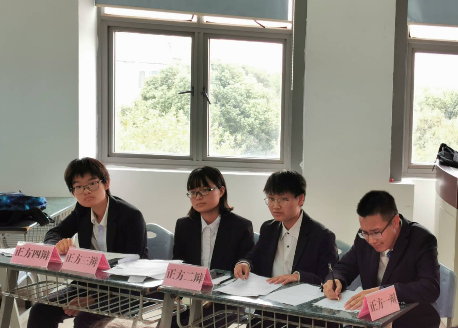 初赛第一场,由王意天、刘悦心、倪佳玉、蔡英杰组成的智能法四队在主教317A急火猛攻妙语连珠,紧扣幸福与客观物质的紧密联系等锐利观点,将反方论得哑口无言,以3:0完胜法庭科学一队,拿下今天第一场胜仗,旗开得胜,开门红运,给接下来的三支队伍带来了极大信心。