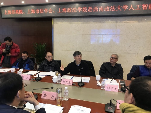 此次考察团主要由我校人工智能法学院组织,人工智能法学院院长杨华教授介绍了学院的现状、困难和发展方向,以及前来考察调研的目的和任务。人工智能法学院专家委员会主任刘学尧、学院教师代表、理事会理事浙江清华长三角研究院法治与社会治理研究中心主任白宁,专家委员会委员科大讯飞副总裁刘江、清华长三角研究院法治与社会治理研究中心研究员赵春学、上海高院信息处副处长吴海崟、凤凰网科技频道主管张建、重庆尚优科技有限公司总裁王利、上海电力公司总经理冯本国,以及上海高院、上海市法学会、上海司法智库学会的其他同志一同前往考察调研。