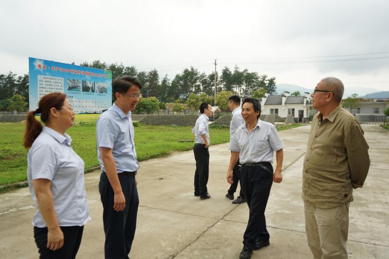 图片说明:2019年7月,刘学尧教授调研资金互助扶持企业黟县有农生态农业有限公司,创办者全国青年农民致富带头人徐海波介绍发展情况。