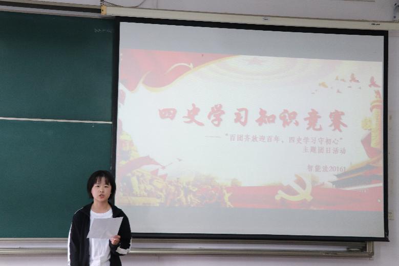 史是最好的教科书。“四史”是中国共产党人宝贵的精神财富,是中国共产党人增强底气、骨气、正气的内生动力。2021 年是中国共产党建党100周年,为响应校团委在全校开展“百团齐放迎百年,四史学习守初心”主题团日活动的号召,2020年10月20日,智能法20161举办了四史学习知识竞赛,并取得圆满成功。组织委员张帆主持本次知识竞赛。