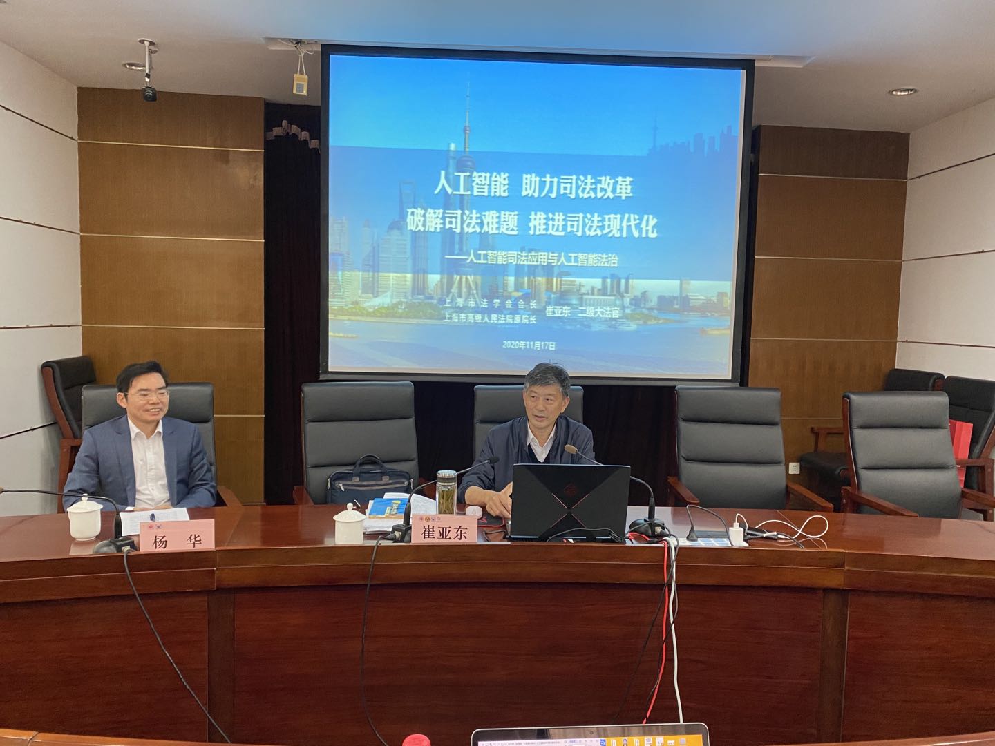 2020年11月17日下午,上海市法学学会会长,上海市高级人民法院原院长、二级大法官,新利18官方客服人工智能法学院首席专家崔亚东到访我校,在求实楼513会议室为人工智能法学院师生作题为《人工智能助力司法改革 破解司法难题推进司法现代化——人工智能司法应用与人工智能法治》的讲座。人工智能法学院院长杨华主持,学院教师代表和2019级、2020级本科生等80余人参加了此次讲座。
