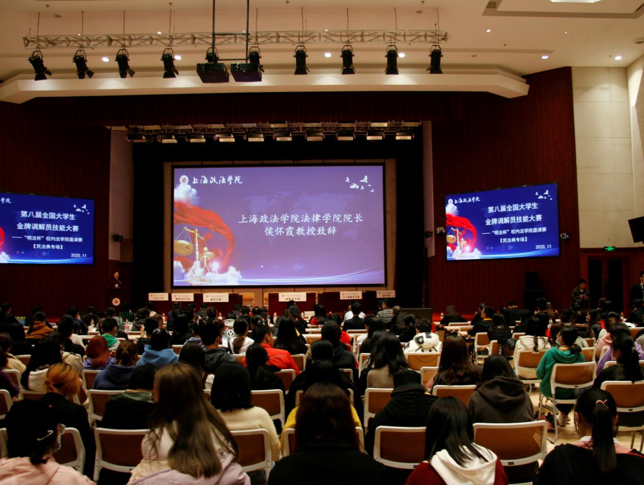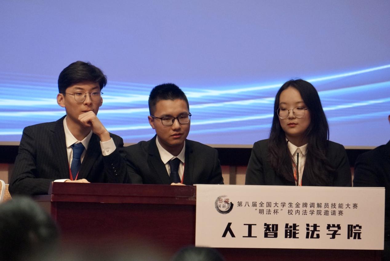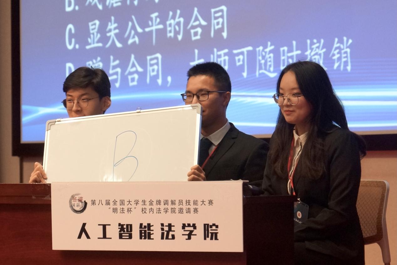 2020年11月24日下午一点整,新利18官方客服在中国-上海合作组织国际私法交流合作培训基地(上合基地)开展了第八届全国大学生金牌调解员技能大赛·“明法杯”校内法学院邀请赛(民法典专场)【后简称“明法杯”】。人工智能法学院的“许你秋天舒昕队”由吴惟予老师带队,派出王意天、许瀚文、姜怀舒、孙霖秋和郑昕五位代表出战答题。
