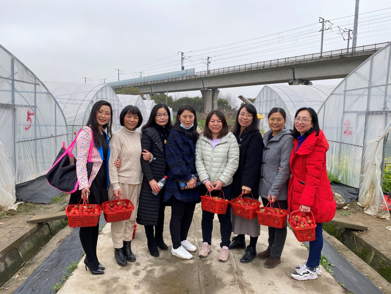 本次草莓采摘活动的地点选在松江区泖港镇。2021年3月16日下午,参与活动的教职员工们陆续抵达了学校集合处共同前往草莓园。到达草莓园后,天气阴天,还带着丝丝凉意,但大家健步快走、气氛热烈融洽,迎着春天的脚步零距离感受田园风光。在草莓园工作人员的带领下步入草莓棚,体验亲手采摘的超凡乐趣。大棚内红绿交映,香味扑鼻。大家一边采摘,一边品尝,欢声与笑语不断,快乐与热情四溢。