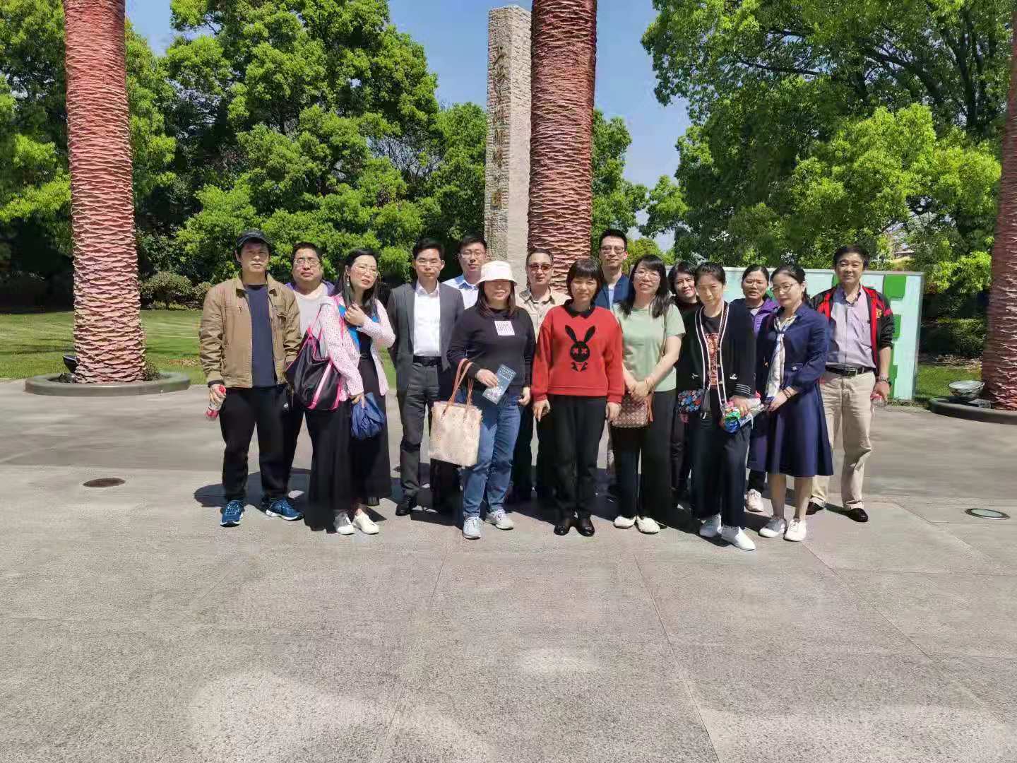 午饭后,大家集体乘坐大巴来到月湖雕塑公园。公园位于佘山国家旅游度假区内,环湖而建,是一座集自然风景与现代造景艺术相结合的雕塑艺术园区,以“月湖”为主题专案创作雕塑作品60余件,沿湖岸错落摆放,整件雕塑风格“恬美、闲适、温馨”,许多雕塑具有“生命”的意义,体现出水是“生命之源”的主题,希望人们爱护自然,保护自然。大家三五成群结伴参观各个景点。大家在享受优美自然景色的同时,也不忘留影纪念,增进了彼此的情感。