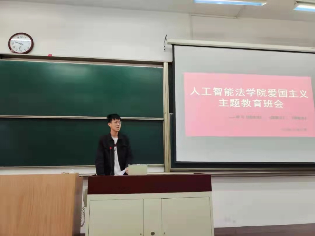 10月30日,人工智能法学院于302B举行以“弘扬爱国主义精神,激发爱党爱国情怀”为主题的爱国主义教育班会,学院全体本科生、研究生参加,辅导员徐轶凡主持班会。
