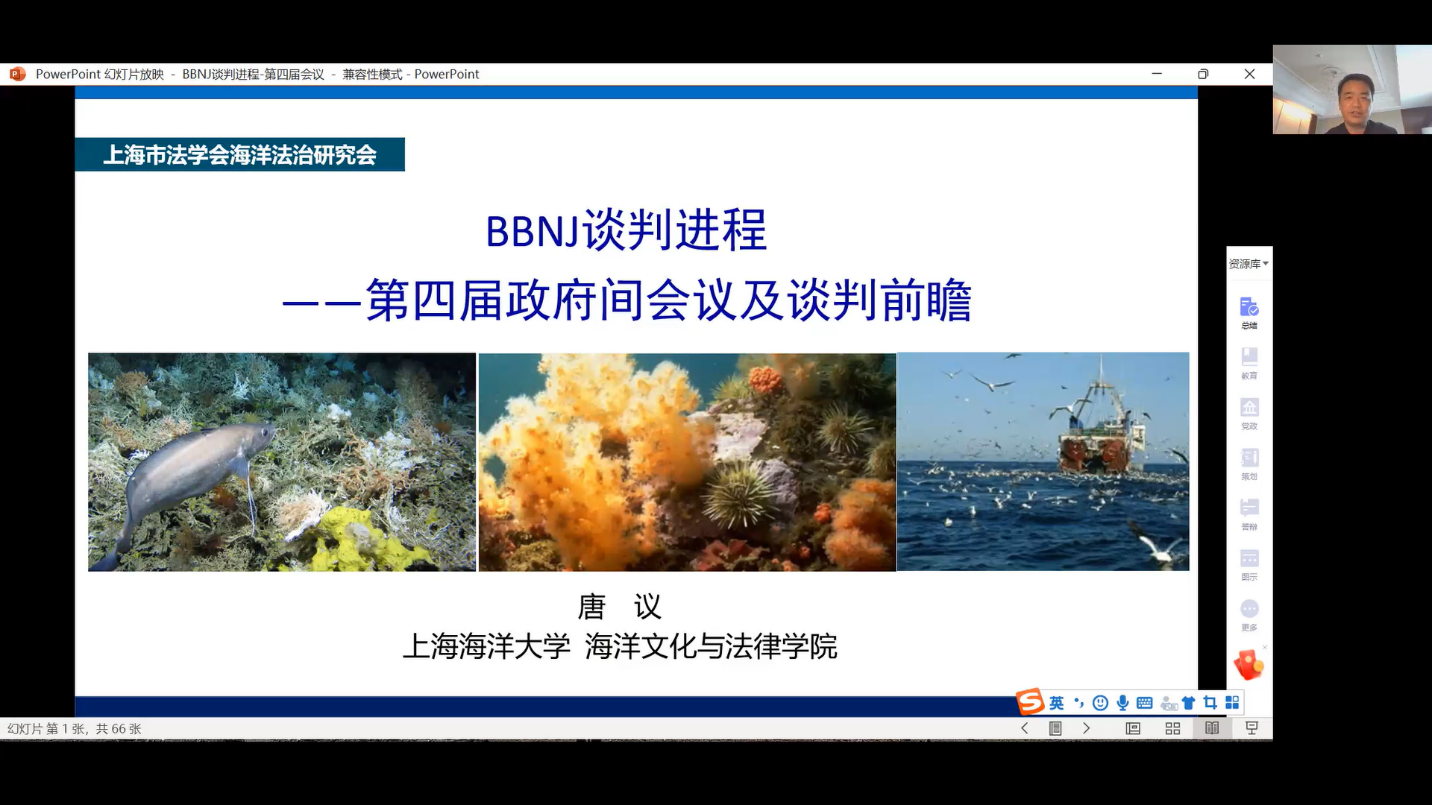 2022年3月31日下午,上海海洋大学海洋文化与法律学院院长唐议教授应邀做客我校“名家讲坛”第九十六讲并作线上专题讲座:“BBNJ谈判进程——第四届政府间会议进展及谈判前瞻”。讲座由我校科研处、人工智能法学院、国际法学科和上海市法学会海洋法治研究会主办,人工智能法学院院长杨华教授主持讲座,讲座同时还邀请了厦门大学南海研究院副院长施余兵教授、自然资源部海洋战略发展研究所环资室主任郑苗壮副研究员、上海交通大学日本研究中心郑志华副研究员和新利18官方客服人工智能法学院吴惟予博士作为与谈人,我校百余名师生参加了此次讲座。据悉,在今年3月刚刚结束的联合国BBNJ第四届政府间会议上,唐议教授是代表中国政府参加此次谈判的四名专家之一,也是唯一来自高校的专家。