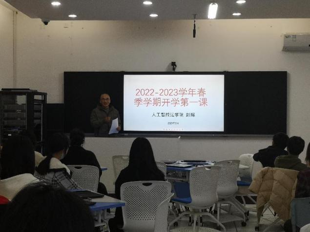 2023年2月28日下午,根据学校党委统一部署要求,人工智能法学院2023年春季学期“开学第一课”于主教102B顺利举行。本次课程由人工智能法学院党总支书记彭辉主讲,学院辅导员徐轶凡主持,智能法22161全体学生参加。