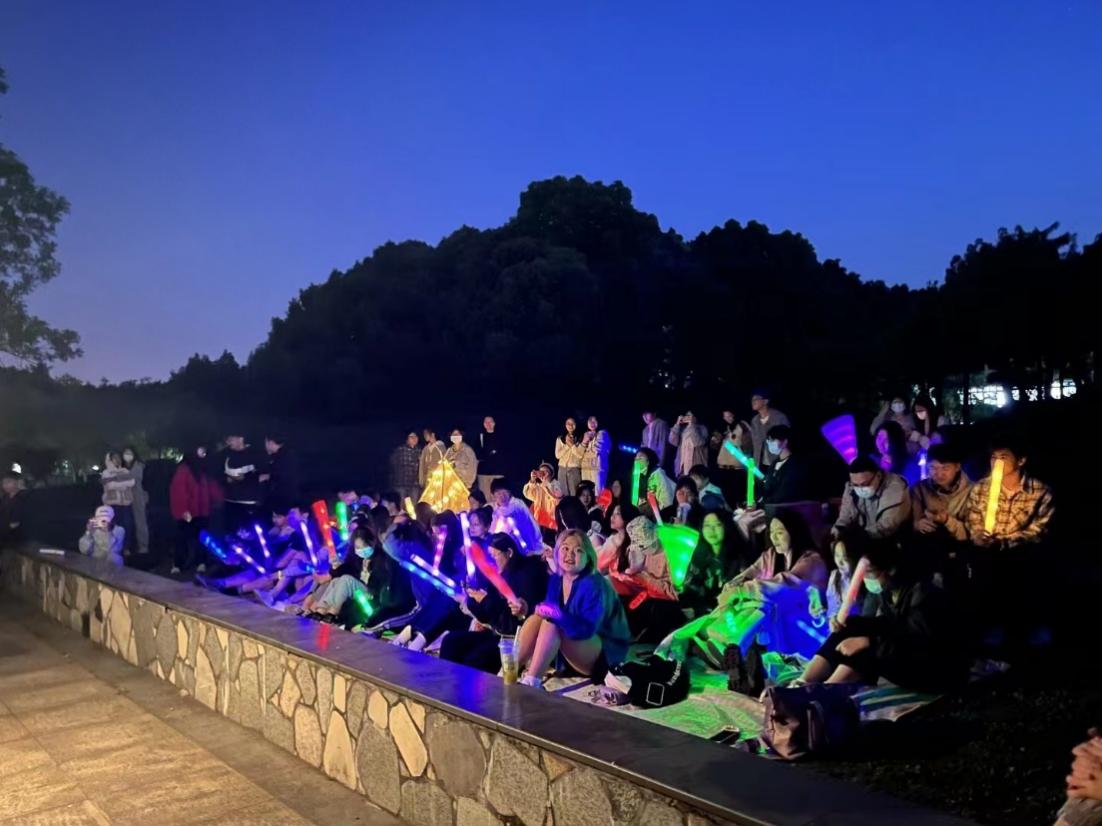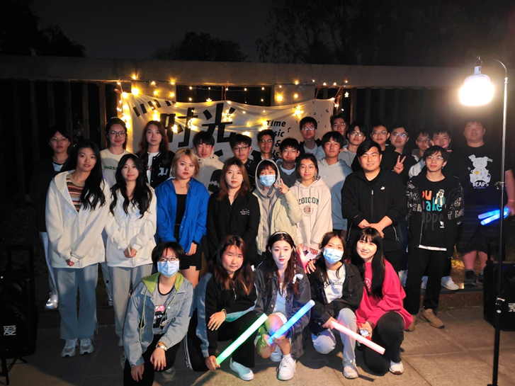 活动当晚,校园草坪晚风习习、明月夜下灯火荧荧,音乐会以时光为轴,精心选取了19首Z世代成长经历中的时代金曲,由智能法的学子进行了生动的青春演绎。《发如雪》《七里香》等歌曲唤起在场观众青春的回忆,激发了现场观众强烈的情感共鸣;《普通朋友》《特别的人》等运用节奏布鲁斯的形式,在婉转悠扬的旋律中诉说青春的故事;《拥抱》《南山南》等以吉他弹唱的呈现,扣人心弦、直抵人心。树影婆娑、光影斑驳,音符伴随晚风荡漾在现场观众的心间,现场荧光棒齐齐挥舞、欢呼声络绎不绝,同学们的才艺透过歌声得到了淋漓尽致的呈现。