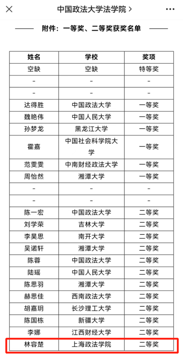 近日,由中国法学会立法学研究会主办、中国政法大学法学院和湘潭大学法学院承办的2023年全国法科学生模拟立法大赛顺利落幕。由人工智能法学院鲍坤老师指导,人工智能法学院本科生林容楚担任组长,人工智能法学院王雨一、代思旭,经济法学院宋信达,法律学院方炜涛、姜婉平,警务学院许天骏为组员组成的参赛团队荣获全国二等奖。