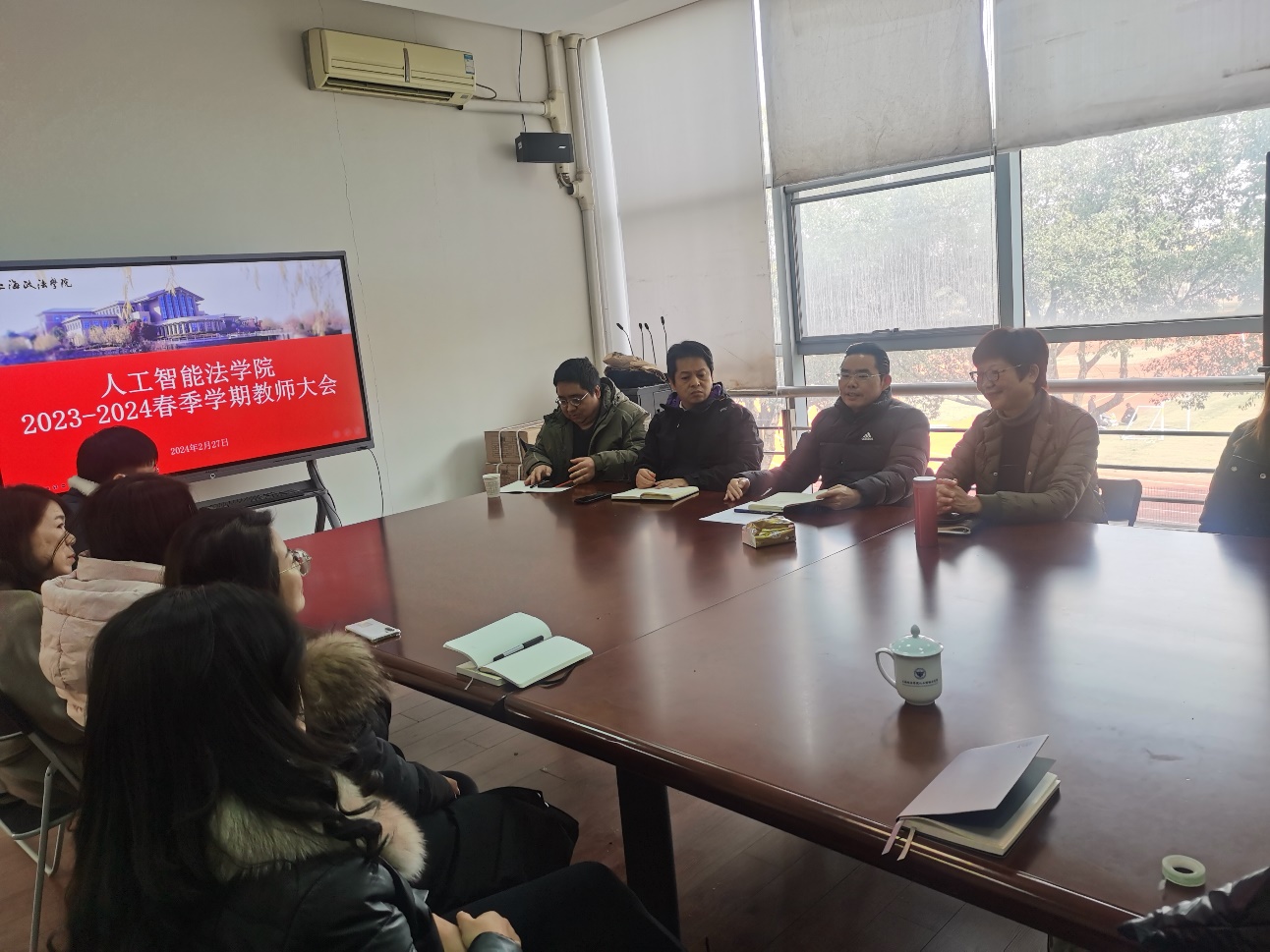 2024年2月27日下午,人工智能法学院在主教209C会议室召开2023-2024学年春季学期教师大会,会议由院长杨华主持。学院党总支书记王静、副院长黄芹华、学工负责人印晓慧出席会议,全院教职工均参加了本次会议。