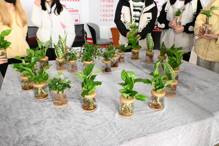 在本次活动中,同学们通过“听语识花”和植树节环保知识问答等活动,了解到了许多关于绿色环保和生态文明建设方面的知识。此外,现场的工作人员也向参与活动的同学们介绍了绿萝、九里香、虎皮兰、文竹、发财树、袖珍椰子等绿植盆栽的生态价值意义与环保作用,并在最后给每一位同学送上了一盆精美的绿植盆栽,期望同学们在养育绿植的过程中,也能不断培养自身的环保意识与绿化祖国的责任意识,做绿水青山就是金山银山理念的积极传播者和模范践行者。