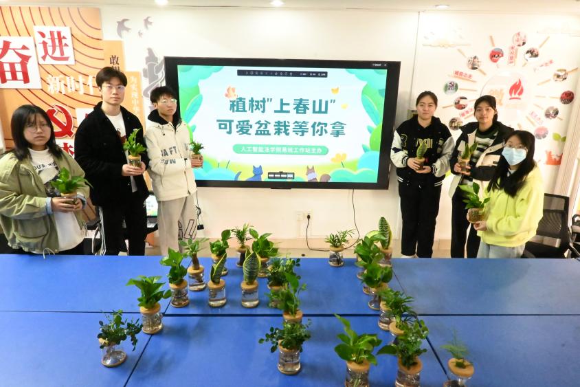 为进一步推进生态文明建设,丰富学院 “一站式”社区建设的文化内涵,在校园内形成人人爱绿护绿的环保文明风尚,3月12日,人工智能法学院团委在18号楼社区活动室开展植树“上春山、添新绿”植树节主题活动,吸引众多师生前来参加。