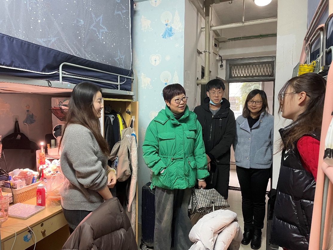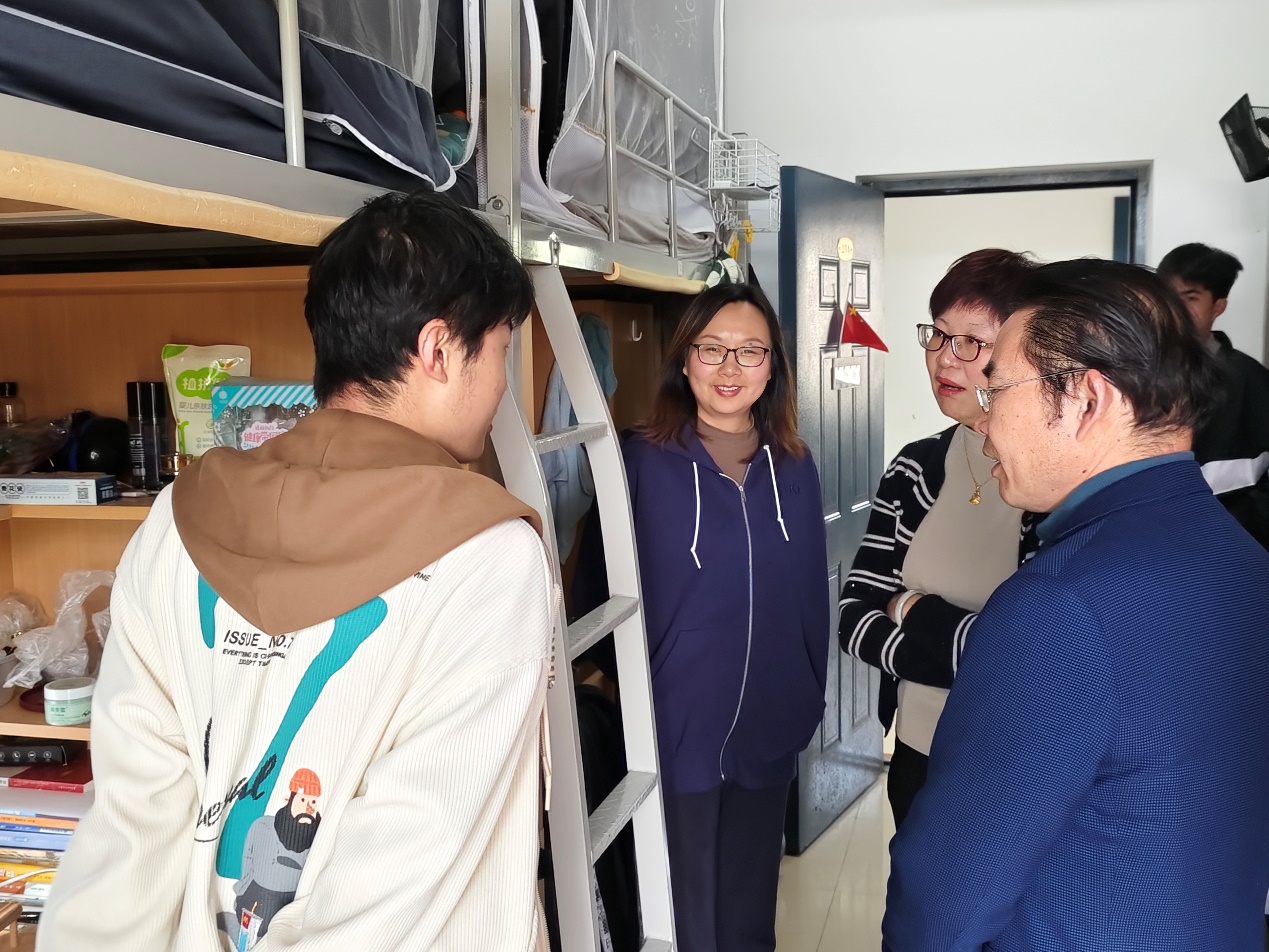每到一处寝室,学院领导都详细询问同学们的学习生活等情况,对未来的职业生涯规划以及对学院工作的意见建议,同学们与学院领导进行了深入交流,气氛活跃。学院领导充分肯定了同学们健康积极的精神面貌与温馨整洁的寝室环境,并对同学们提出期望:一是守牢安全底线,严格遵守社区各项管理制度,尤其是要注意消防安全、用电安全,坚决杜绝违章电器等隐患风险,做平安社区建设的主人翁;二是树立规划意识,结合自身情况实事求是地做好升学就业规划,对自己未来的发展道路早思考、早行动;三是营造积极向上氛围,保持昂扬向上、拼搏进取的智法风貌,同学之间要互帮互助、团结友爱,真正让社区成为大家共同的家;四是学生党员、学生干部在社区中要发挥好先锋模范作用,在学习、生活、身心健康等各方面关心、帮助有需要的同学。