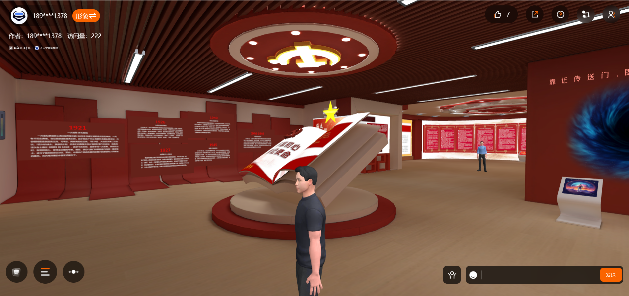 第三阶段为数字党建元空间线上活动,由吴惟予作为元宇宙党建空间向导,和党员师生一同前往参观游览学院新建成的“党建红色巡展”。