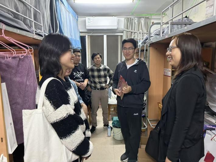 2024年10月25日至31日,人工智能法学院党总支书记徐俊峰、副书记印晓慧、辅导员常小瑜与孙启睿陆续前往本科与研究生各个寝室,慰问与关心同学们的学习与生活。