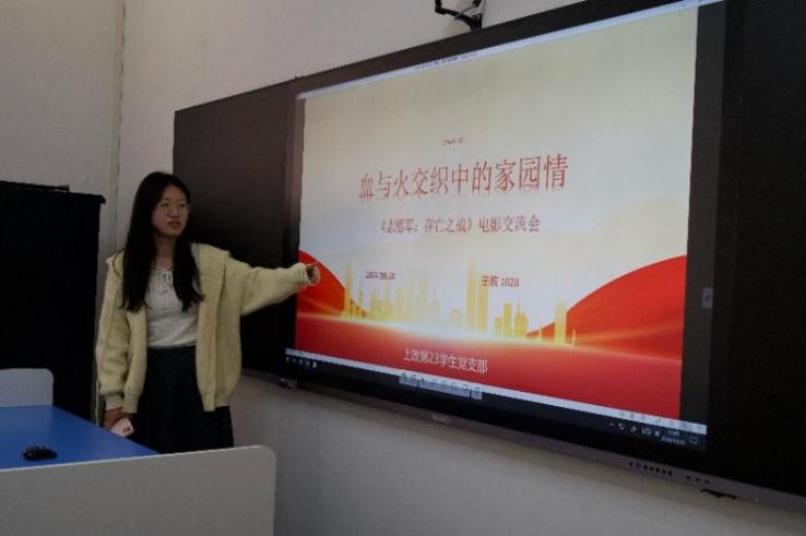 在纪念中国人民志愿军抗美援朝74周年之际,2024年10月29日下午,上政第23学生党支部开展《志愿军:存亡之战》电影党课系列活动。此次电影党课活动由两部分组成,一是集体赴影院观看电影《志愿军:存亡之战》,二是开展观影心得交流会,彼此分享收获与感悟。