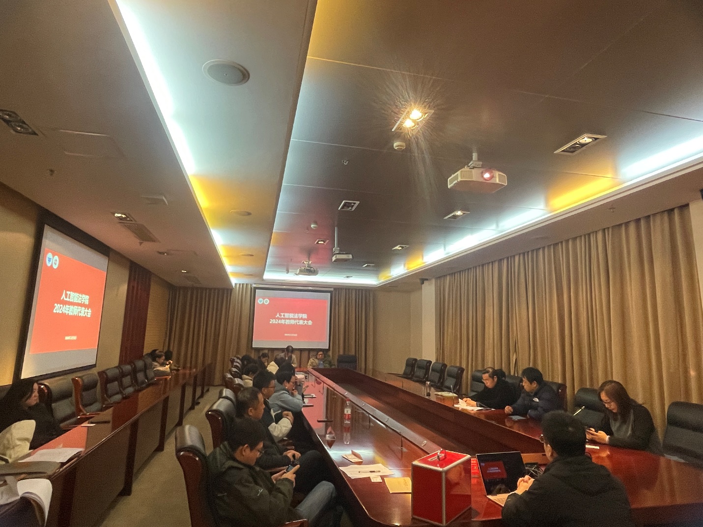 2024年12月31日,人工智能法学院在汇知楼101会议室召开全院教师代表大会,审议2024年度学院各项工作报告。会议由党总支书记徐俊峰主持,党总支副书记、院长杨华,副院长黄芹华和党总支副书记印晓慧出席,全院教职工参加了本次会议。