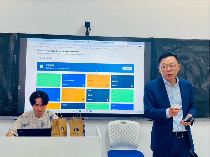 为深入开展促就业“五个一”提质增效活动,2025年5月14日,人工智能法学院《人工智能法治应用》课程教师鲍坤邀请到上海功承瀛泰律师事务所高级合伙人薛晓东开展交叉讲座,系统讲解律所自主研发的AI大模型在法律实务中的应用,课堂反响热烈。