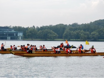 比赛当天,随着激昂的鼓点响起,队员们协力划桨,龙舟如箭离弦,在湖面上破浪前行。观众席上,欢呼声与呐喊声此起彼伏,为参赛队伍注入了源源不断的动力。在此次比赛中,我院龙舟队荣获小组第二名,团体第十五名的佳绩。队员们不仅在赛场上一展坚韧不拔的斗志,更彰显了卓越的团队合作精神。他们以汗水与热忱演绎了勇往直前的精神风貌,既为学院赢得了荣誉,也为我校的体育文化建设贡献了人工智能法学院师生的一份力量。