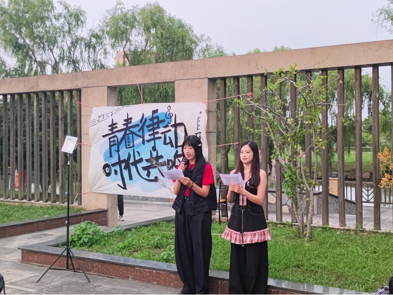 暮色轻垂,晚风织梦,5月25日傍晚,我院校园文化艺术节系列活动之“青春律动,时代共鸣”校园音乐节在情人坡草地上举行。灯光与星辉交织,音符与心跳共振,同学们以音乐为笔,以草坪为纸,书写校园文化的璀璨诗篇。