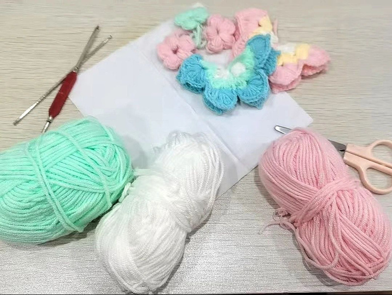 作品介绍:钩针编织是以钩针为工具,牵引毛线编织出立体或平面织物的传统手工艺。在针脚游走之间获得片刻思绪上的闲暇,手中生蝶生花,这就是钩针编织的魅力所在。