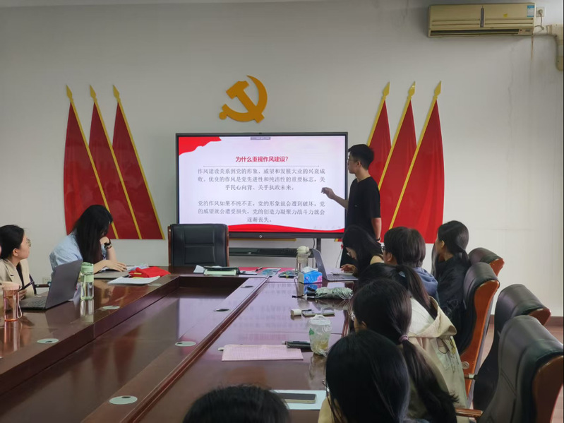 学生党支部组织委员蔡明骏围绕“深入贯彻中央八项规定精神”分享学习体会,领学《习近平关于加强党的作风建设论述摘编》,强调青年党员要自觉抵制“四风”,带头转变作风,在今后的学习与工作中时刻保持清正廉洁、务实为民的政治本色。