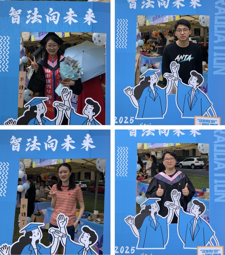 “智法向未来”合影区吸引了众多毕业生驻足留念。同学们在这个特别的时刻留下珍贵的影像。一张张笑脸定格在镜头中,记录着青春最美好的模样。