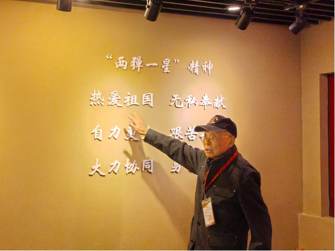 基地纪念馆内陈列的大量珍贵历史图片、实物模型与影像资料,生动再现了我国“两弹一星”事业艰苦卓绝的发展历程与辉煌成就。85岁的“两弹一星”老功臣朱孔阳老师亲自担任馆内志愿者讲解员,他带领全体教师细数一件件展品之后的动人故事,并分享了自己大学毕业后毅然投身大西北、从事“两弹一星”工程的艰辛历程。老师们在朱老师的倾情叙述中,深切感悟到老一辈科技工作者“热爱祖国、无私奉献,自力更生、艰苦奋斗,大力协同、勇于登攀”的崇高精神。他们隐姓埋名、将个人理想融入国家命运的感人事迹,深深震撼并激励着在场的每一位教师。