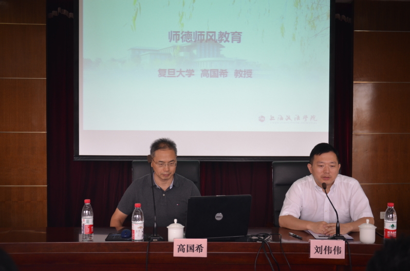 此次培训邀请了复旦大学马克思主义学院高国希教授就“立德树人与师德”作专题讲座。高国希强调教书育人不是“教书”结合“育人”,而是为“育人”而教书,把立德树人融入到课程、大学管理等各项工作中,是每一位教师的职责与使命。高国希从道德情操、理想信念、扎实学识、仁爱之心等四个方面具体阐述“四有好老师”标准的含义。他指出,教师“传道授业”,是要将政治认同、国家意识、社会主义核心价值、宪法和法律以及真理传输给学生,以身作则、言传身教,通过课程教学培育学生理性的、合乎逻辑的思维品质,在行为上作出对自己、他人、社会乃至国家有情感、负责任的选择。高国希还对师德师风专题培训的意义作出肯定,他指出,跟前辈、教授的交流是一个教师成长的必经之路,希望各位老师在工作岗位上感受到教师职业的光荣,有所收获。