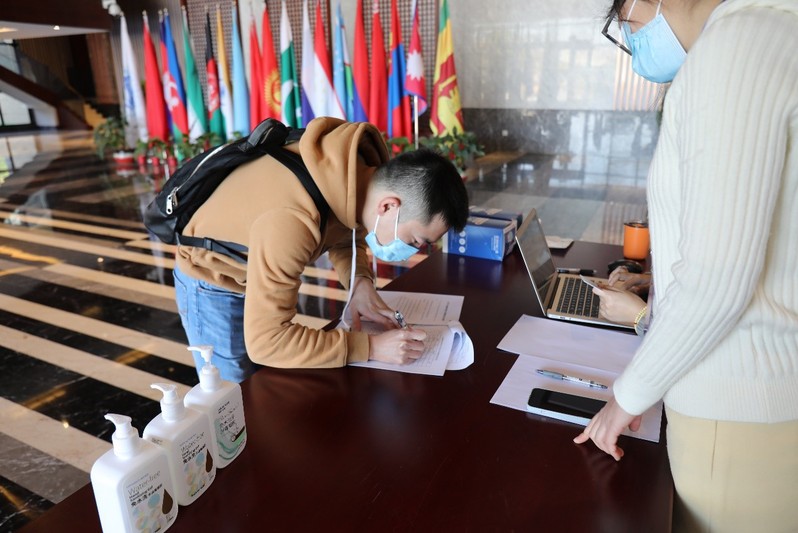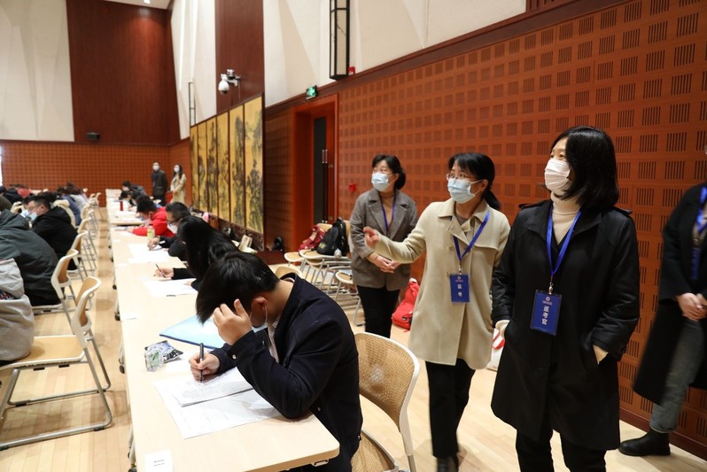 本次考试是新冠病毒感染实施“乙类乙管”以来我校首次组织的线下大规模招聘活动,考虑到应聘人员来自全国各地,人事处谋划在前,精心筹备,协调对接相关部门安排布置考场、落实校园进出管理要求,提前向应聘人员发出考试通知以便合理安排考试时间,就有关注意事项对应聘人员进行了温馨提示,并在考场入口的签到处,为考生提供口罩、消毒液等防疫用品和备用文具,组织考生有序入场。