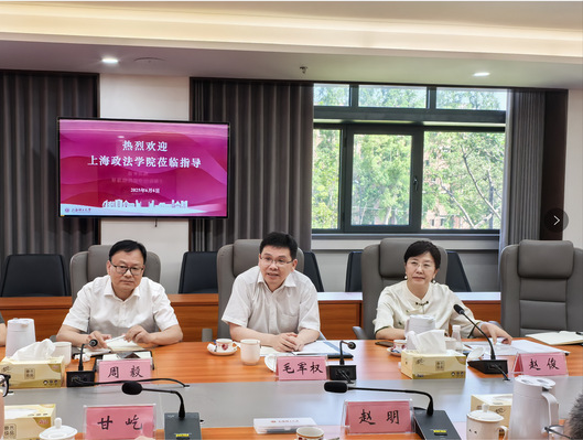 毛军权代表我校对上海理工大学为本次调研所做的精心安排与热情接待表达了感谢,并简要介绍了我校自创办以来深耕法学教育、服务国家战略的发展历程,着重介绍了学校学科特色以及中国—上海合作组织国际司法交流合作培训基地在培养涉外法治人才、推动国际司法合作方面取得的突出成就。他表示,上海理工大学在人事制度和财务管理创新中的先进理念和改革举措具有示范效应,为我校提供了宝贵的学习样本,期待赵明总会计师及团队莅临指导,进一步为我校传经送宝。