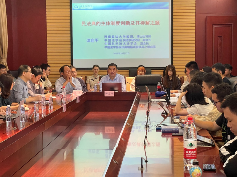 近日,汇知讲坛第四讲“《民法典》民事主体制度的创新及其待解之题”专题讲座于我校顺利举行。本次讲座邀请了中国法学会民法学研究会副会长、西南政法大学谭启平教授主讲,我校上海司法研究所副所长孟飞教授主持,法律学院副院长王康教授作与谈,几十名师生参与交流。