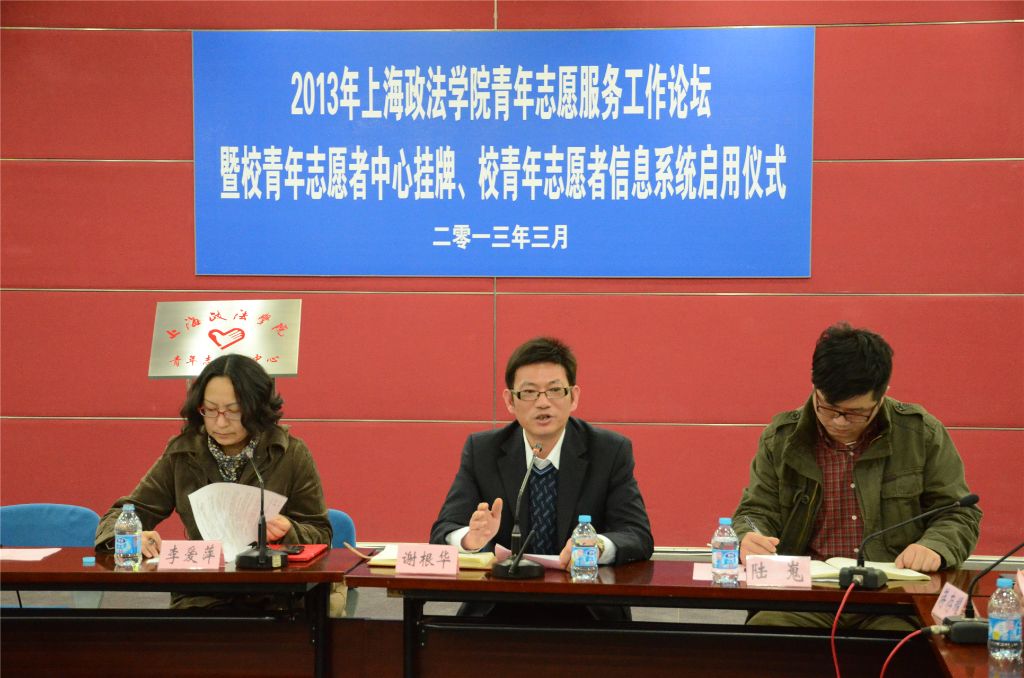 3月28日下午,2013年新利18官方客服青年志愿服务工作论坛暨校青年志愿者中心挂牌、校青年志愿者信息系统启用仪式在庸夫楼101室举行。校党委副书记、副校长谢根华同志出席会议并讲话。校团委、心理咨询中心相关教师及各学学院、研究生部师生代表参加了此次活动。