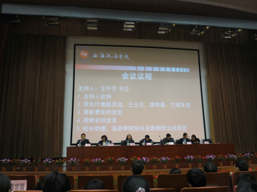 在学生代表发言的环节中,来自08级政治学专业的毕业生赵志远谈其大学生活历程,为我们总结“化主动为被动”的学习方法。紧接着,09级公共事务管理专业的毕业生王士东,他详尽地传授在座的高职同学以专升本考试经验。随后,10级行政管理专业在校生唐荣春和亢萌,分别给我们带来了四六级考试经验和匈牙利学习交流体会。他们真诚的话语提醒着国务学生们:要踏实而可行地追求自己的目标。随之,周秋君老师详细介绍了天马系列学术活动。而后青年教师代表周顺;老师发言,她介绍了大学期间的学习问题,将丧失学习兴趣的同学分为三种类型,并一一对症下药。